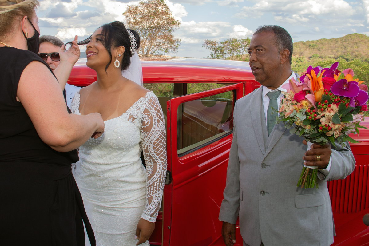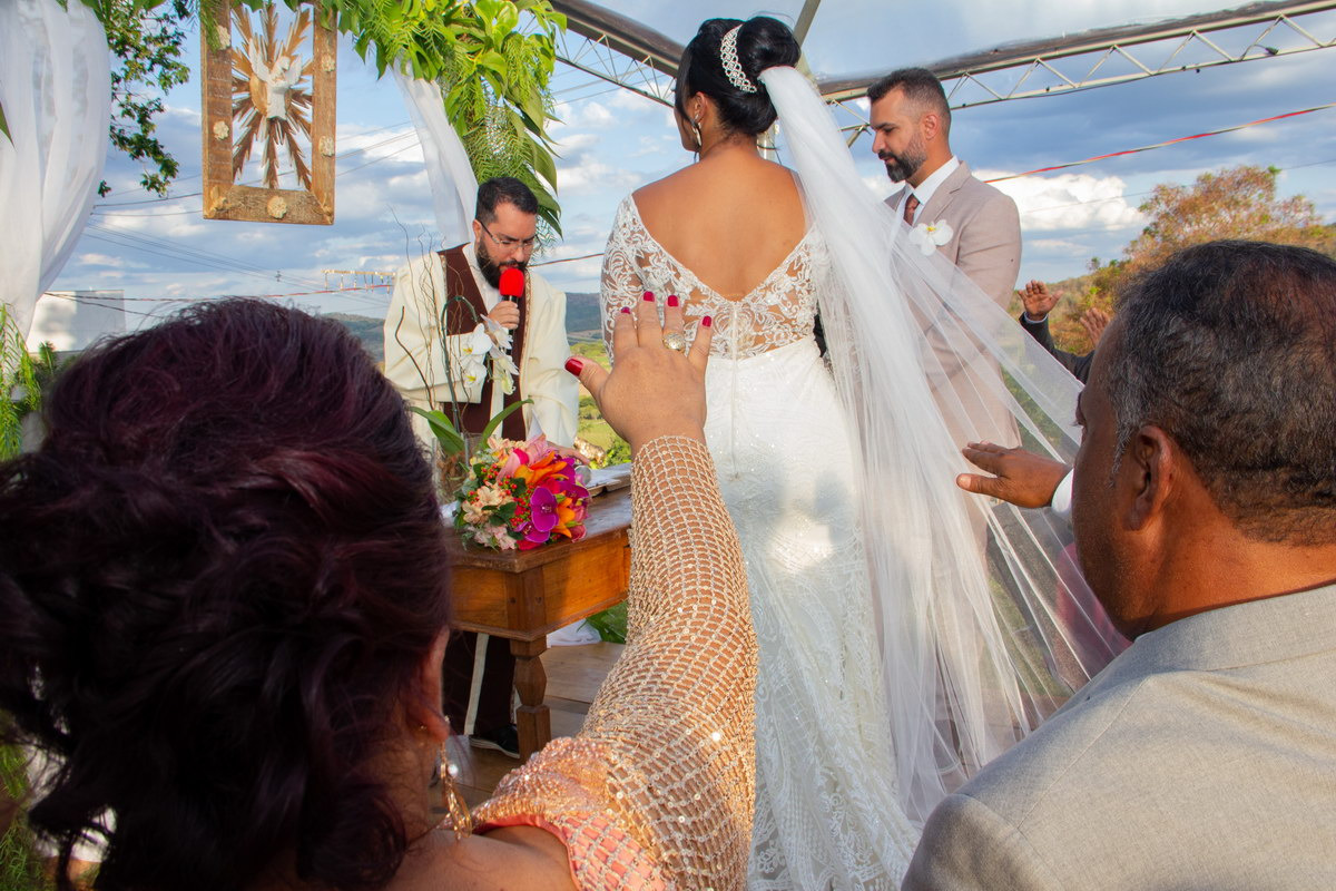 Finalmente chegou o dia tão esperado. A torcida foi grande, a família, os amigos e fornecedores. Depois de tanto marca/desmarca por motivo da pandemia a cerimônia de enlace de Naiara e Guilherme finalmente aconteceu. Uma linda tarde, onde a chuva prevista deu lugar a um lindo por do sol no Condomínio Fortuna Park. Um encontro esperado com ansiedade por todos, muitos amigos, inclusive do tempo de faculdade e familiares. Todos juntos se permitiram a um brinde ao amor e à vida.